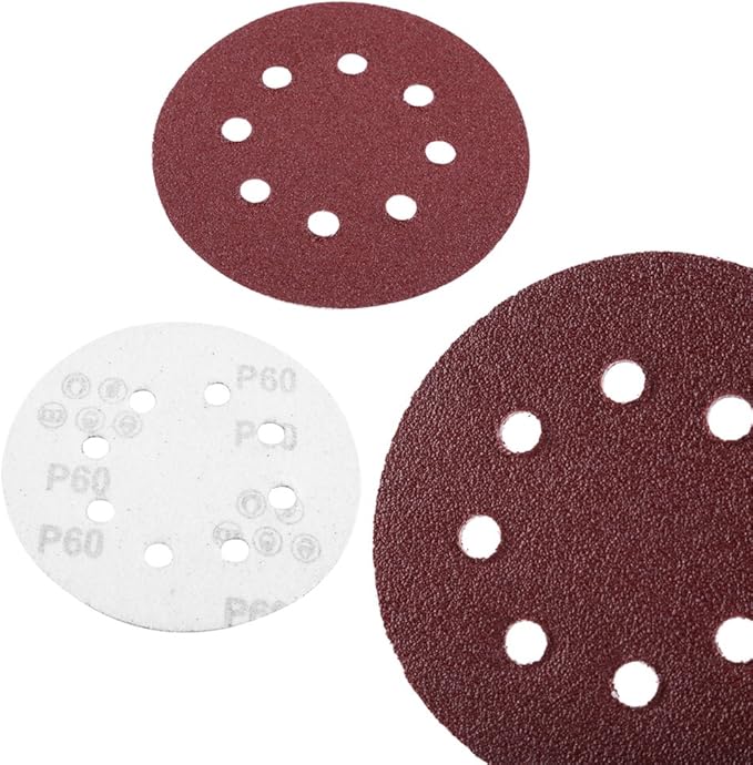 ディスクペーパー サンディングディスク サンドペーパーディスク 研磨用 丸型 8穴あき 60#/80#/100#/120#/240#各20枚 100枚セット