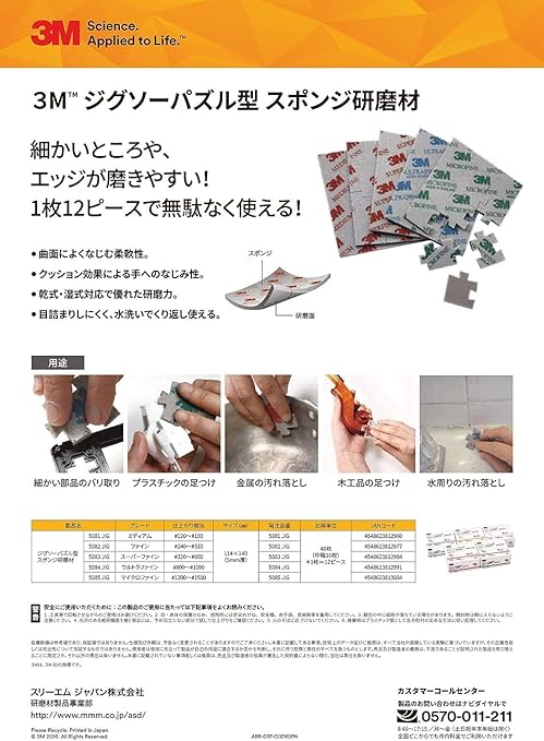 3M ジグソーパズル型スポンジ研磨材 5085JIG 114X140mm #1200-1500相当 単品対応品