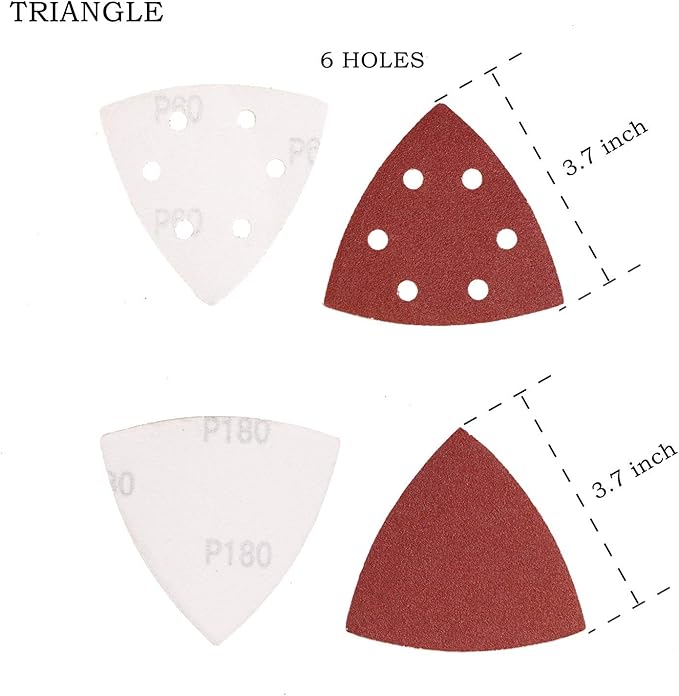 WINGONEER 50PCS 3.5 "インチ6穴トライアングルサンディングパッド詳細サンダーサンドペーパーサンディングペーパーダストレスフックパームサンダーに適しています-180グリット