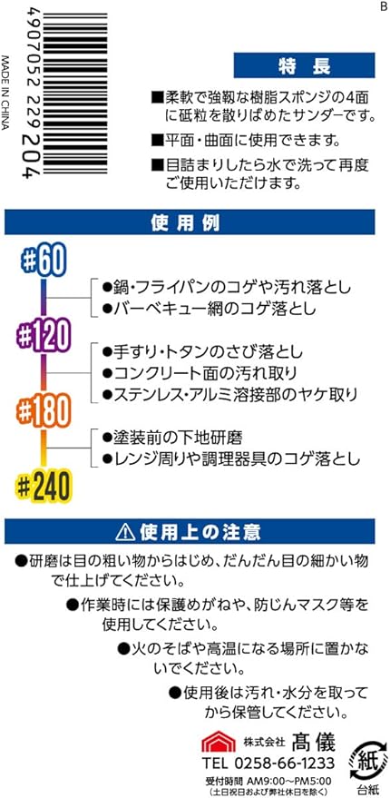 高儀(Takagi) M&M 乾式・湿式 スポンジサンダー #60