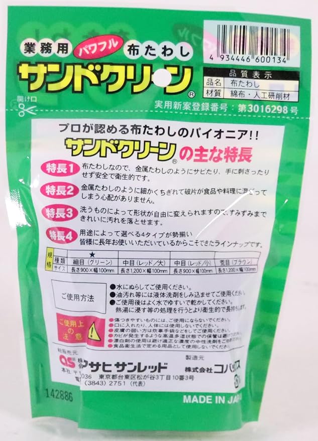 ●鍋・釜・レンジ等の焦げや庖丁の錆、野菜の汚れ落としや皮むきにぴったり。布製だから手を切る心配がない