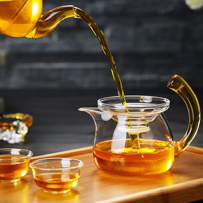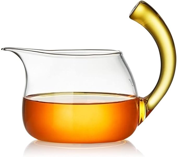 ポカロティー 耐熱ガラス茶海 公道杯 クリア湯のみ 透明個性カップ 上向形黄色いガラス持ち手 茶具 直火可 電子レンジ対応 洗いやすい 耐熱 360ML Y4R-400-2