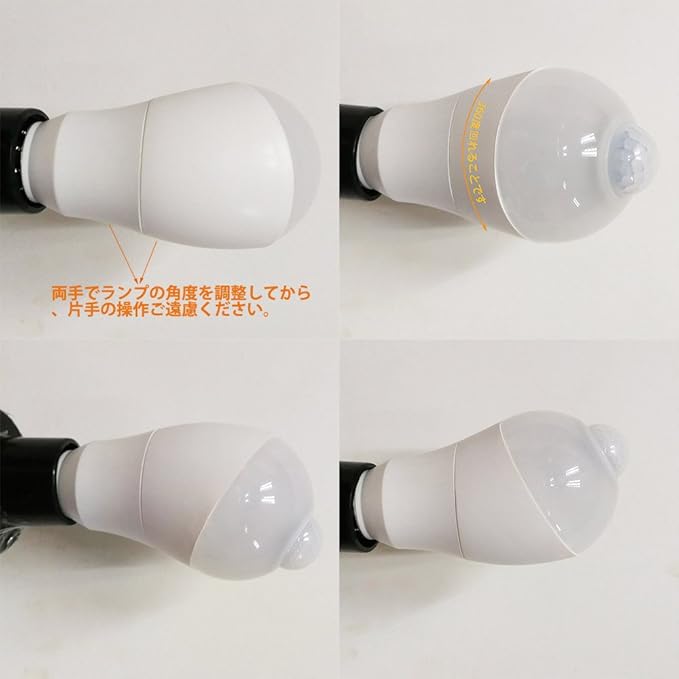 この電球中心は360度回れることです、取り付ける環境により、検知角度を調整できます。普通人感電球の感応距離は90度しかないです、この人感電球は実際に120度実現できることです。
