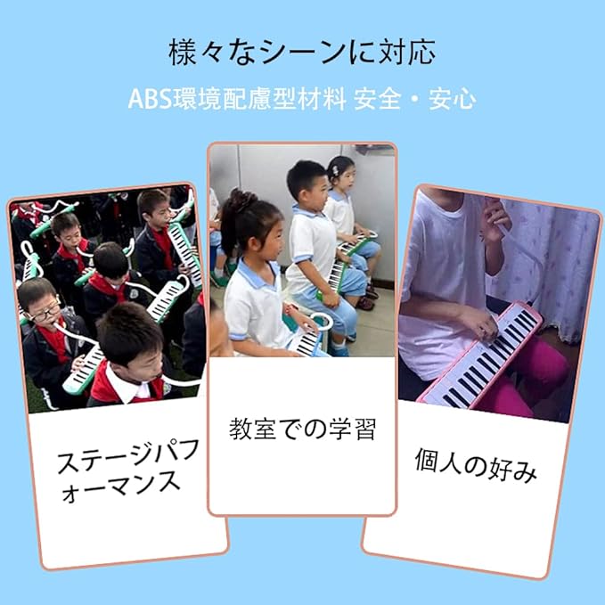 【使用方法】製品は口で演奏するので、1人1つ、勝手に貸して使わないでください。使用前に手を洗って、口をすすいで、また直射日光を避けて、ホースを強く振らないで、ホースが壊れないようにしてください。