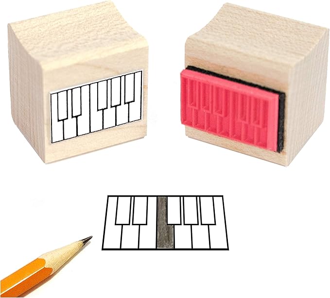 3種類のピアノスタンプと黒のスタンプ台付! 先生方にも生徒さんにもオススメです。 楽譜やノートに鍵盤のテンプレートをスタンプで押し付け、ペンや鉛筆などで任意の部分を塗りつぶしたり、印をつけたり。簡単でとても便利! レーザー成形の1000dpiゴム使用。本体は触り心地の良い木製です。 寸法: 2オクターブ:7.62 x 2.54 cm 1オクターブ:3.81 x 2.54 cm ミニ: 2.54 x 1.27 cm