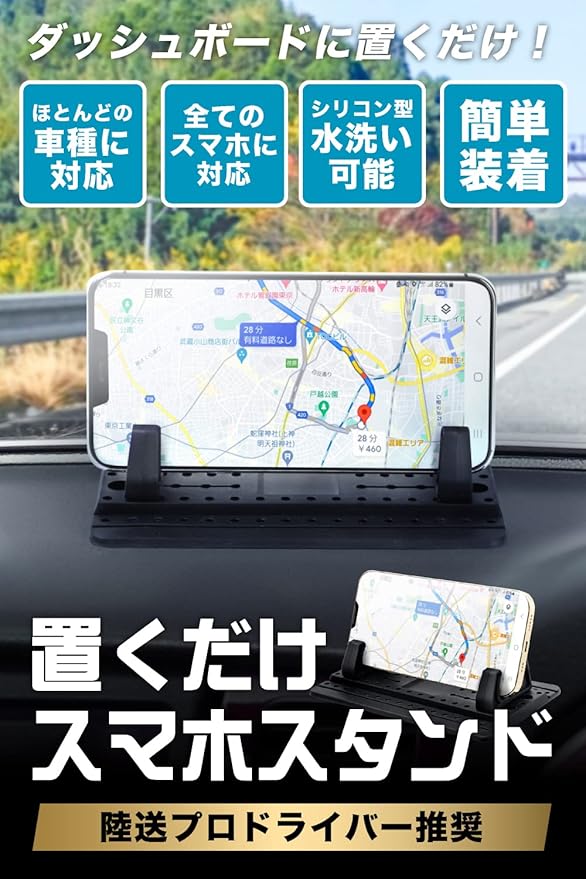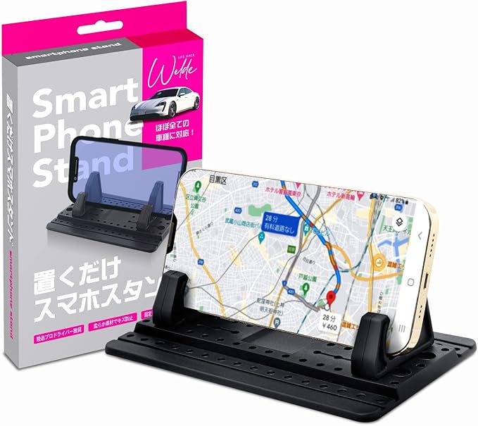 【WELDE】 全車種対応 置くだけ スマホスタンド 超簡単脱着 傾斜に対応 スマホホルダー 車 プロ陸送ドライバー推奨 汎用性 不正レビュー0 持ち運びらくらく ズレない 強粘着パッド キズ防止 安心固定 手帳型 スマホケース対応 旅行 コンパクト 社用車 トラック レンタカー シェアカー スマートフォン 携帯 車載 シリコン製 汎用性 ダッシュボード iPhone Android ipad