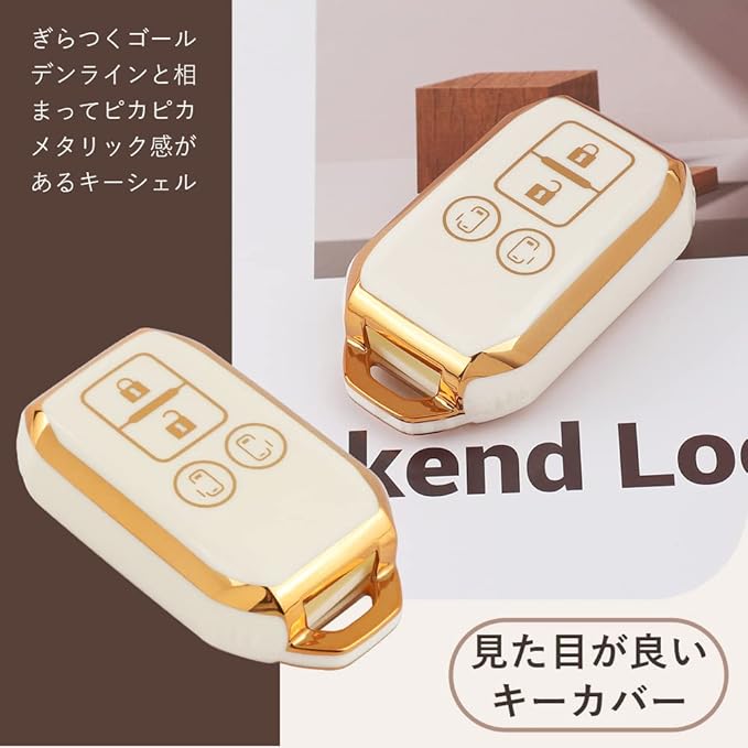 【手触りの柔らかい】スズキ専用キーケースはTPU素材を採用します。滑らかで柔らかい手触りで快適な使用感を実現しています。軽くて簡易な構造はご愛車のキーに新たなイメージチェンジをもたらします。実感があるキーシェルはぎらつくゴールデンラインと相まって、満々ピカピカメタリック感があります。見た目格好が良くて保護には十分で、プレゼントにオススメです。