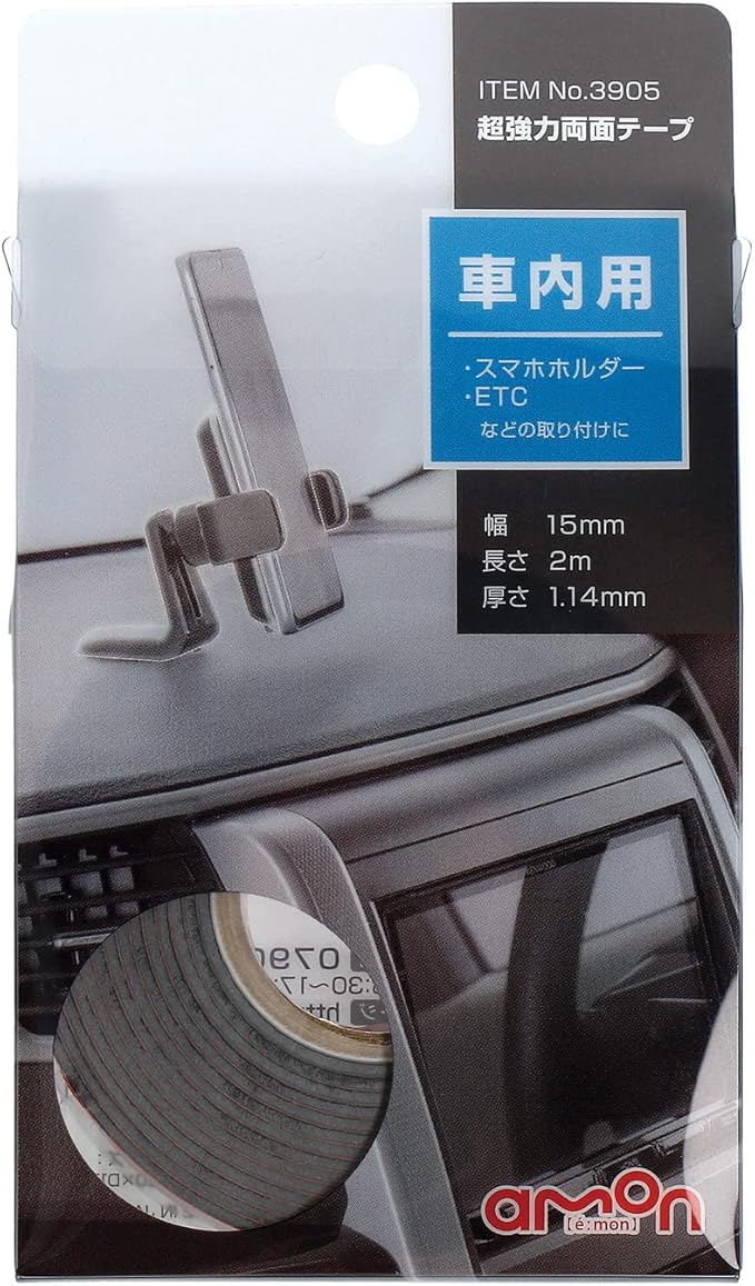 エーモン(amon) 超強力両面テープ (柔らかいダッシュボードなどに) ポリエチレン・塩ビ対応 車内用 黒 幅15mm 長さ2m 厚さ1.14mm 自動車用 3905