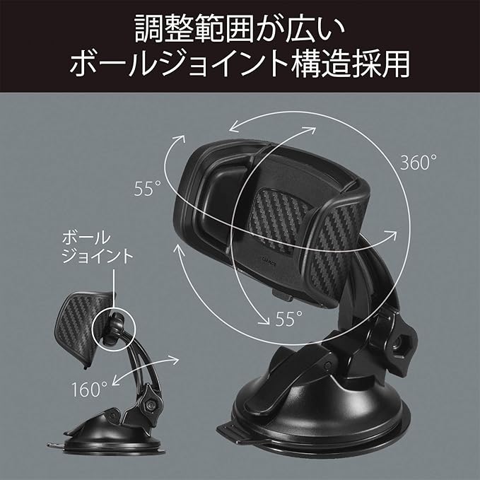 ベース部分とホルダー部分はボールジョイントで接合しています。上下左右に自由に角度調整をすることができます。