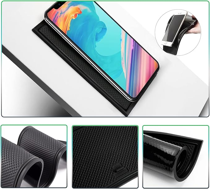 【実用性・滑り止め】ラバーマットの表面に模様のデザインが加わり、摩擦力が増し、滑り止め効果が良好で、置いてあるものに対してクッション性が良くてと衝撃吸収の効果があります。スマートフォンや鍵などの小物を置くと、運転中のカタカタ音や収納ポケットの傷を防止します。