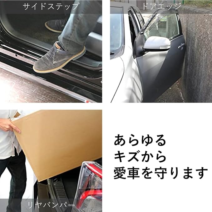 豊富な商品バリエーションにより、ドアエッジ、サイドステップ、リアバンパーステップ、フロントバンパー、ドアミラーカバーなど、各部のキズに合わせて最適な商品をお選びいただけます。