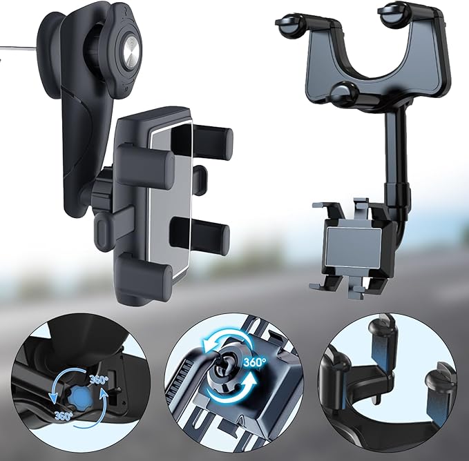 【2024年新版】 車載ホルダー クリップ式 バックミラー スマホホルダー 車 スマホ 360度回転 ルームミラー取り付け型 スタンド ダッシュボード 各種スマホ対応 電話ホルダー スマホホルダー カー用品 取り付け簡単 全車種 手帳型ケース対応 自由調節 車載 ナビ スタンド 滑り防止 保護パッド付 ほとんどのスマホ対応 設置簡単