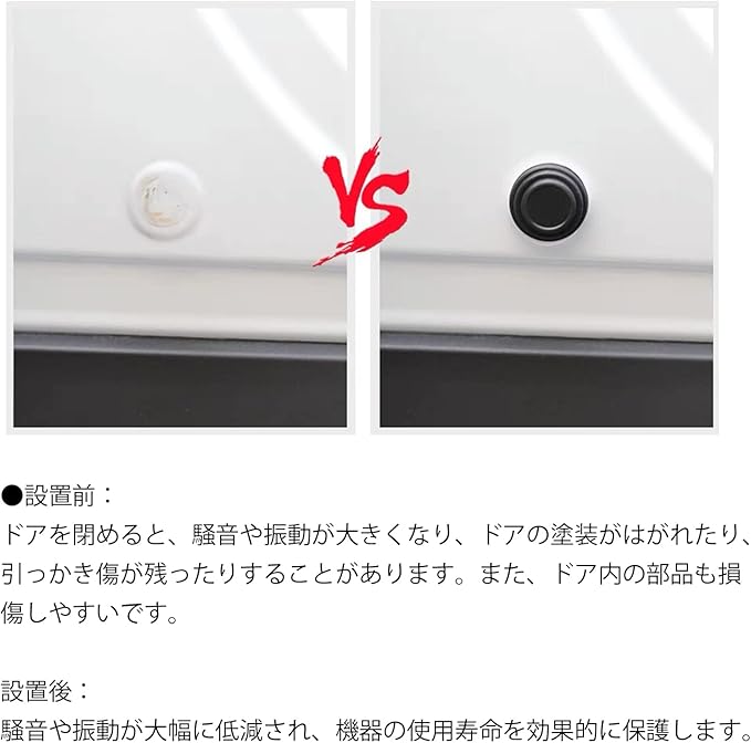 設置前:車のドアを閉めると、騒音や振動が大きくなり、車のドアの塗装がはがれたり、引っかき傷が残ったりすることがあります。 また、車のドア内の部品も損傷しやすいです。 設置後:騒音や振動が大幅に低減され、機器の使用寿命を効果的に保護します。