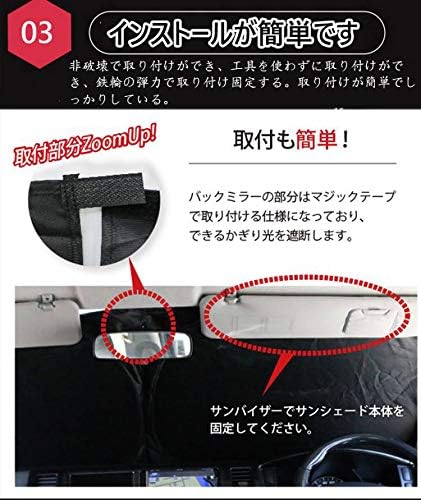 ①車内温度上昇を抑える、断熱、UVカット、日差しカット、コンパクトに収納できる 夏は遮熱効果、冬は車内の保温、エアコン効率UP、隙間なくカバーが車中の際のプライバシーの確保、用途豊富で隙間なくカバーします。