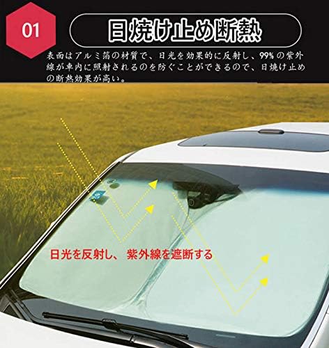 【製品の特徴】①車種専用設計、本体にフィッティングを確認済み、違和感なくぴったりフィットします;②車内温度上昇を抑える、断熱、UVカット、日差しカット、コンパクトに収納できる 夏は遮熱効果、冬は車内の保温、エアコン効率UP、隙間なくカバーが車中の際のプライバシーの確保、用途豊富で隙間なくカバーします。;③持ち運び便利――軽量で折りたたみ式で、簡単にひねると小さいコンパクトに収納するができます;④車内の気温だけでなく内装やハンドル等の熱対策、革や樹脂パーツの色あせや劣化を抑えることができます;⑤吸盤不要、窓枠に当て込むだけで隙間なくカバー、遮光・遮熱効果を確実なものとします。⑥高品質な銀メッキアルミニウムの材質を採用することで、 効果的に断熱日焼け止めの効果を発揮します。 5層の材質 は断熱効果がより