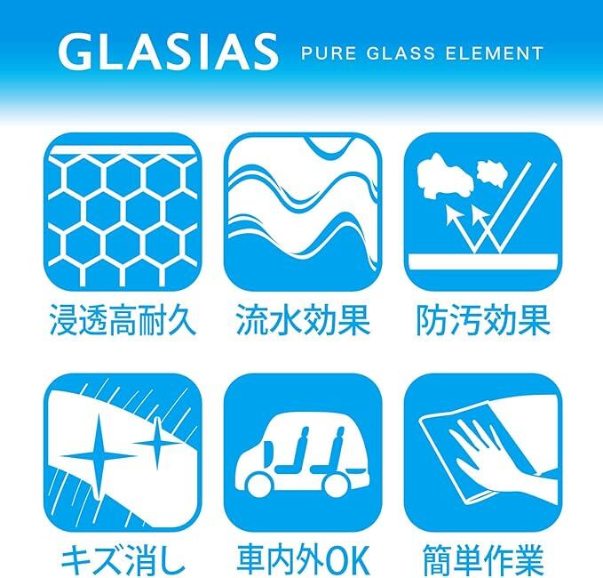 塗装面に浸透してガラス化することにより、半永久的に劣化することがなく、表面を削ったりしなければ効果が持続