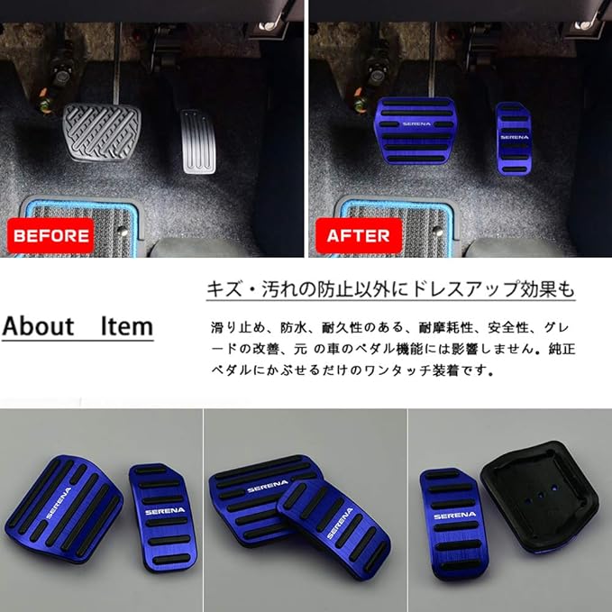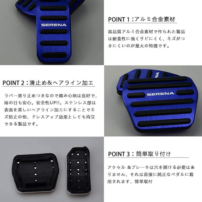 BOYOUS【最新型】日産 セレナ C25系 C26系専用設計 高品質 アルミ ペダル 工具不要 SERENA ブレーキ アクセル カバー 防キズ 防汚れ 滑り止めゴム付 2点セット(ブルー)