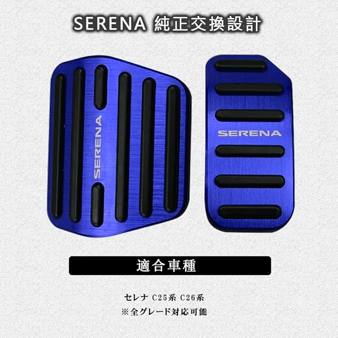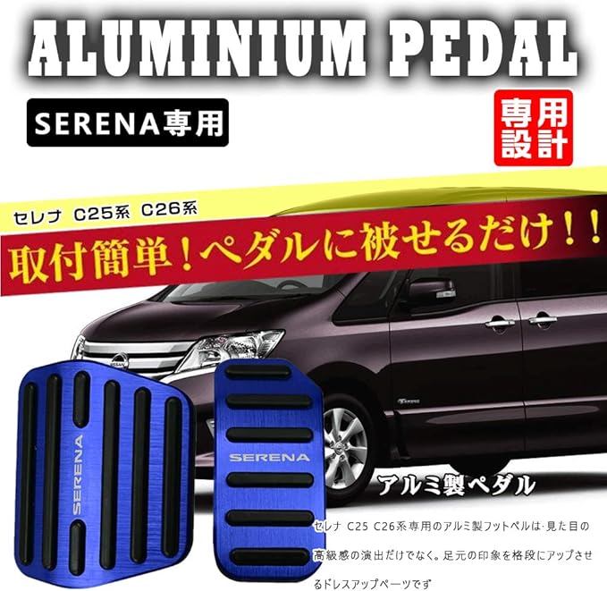 高級感のある、2ピースのアルミ製ペダル。セレナ C25 C26車オルガン式ペダル採用車に適合します。