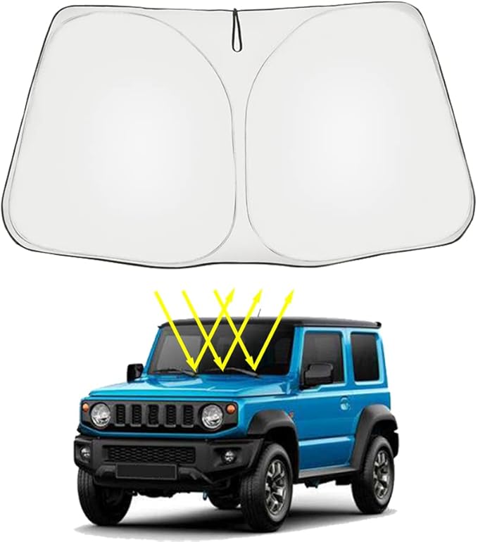 Kakash スズキ専用ロントサンシェード フロントガラス サンシェード シェードカーテン マルチサンシェード UVカット紫外線対策車用遮光カーテン 日焼け防止 内装パーツ 取付簡単 収納袋付車種専用設計適合スズキ 新型ジムニー(jimny) JB64w、JB74w(2018 2019 2020)