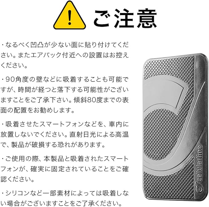 【ちょっとの揺れでも落ちない】超強力粘着力で、運転中のちょっとの揺れでもスマホや小物が落ちません。ダッシュボードの傾斜があるカーブの部分に張り付けてもしっかりガードするので、見やすい位置に装着できます。