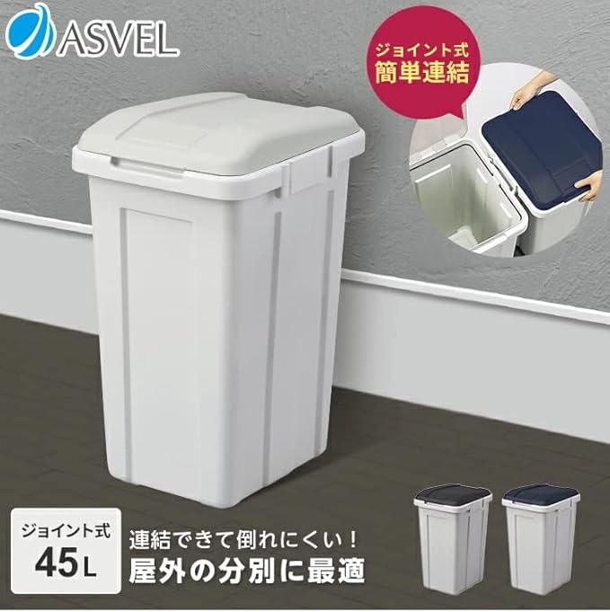 アスベル ゴミ箱 日本製 屋外 ジョイント分別ダストボックス45L 幅34.5 奥行40.5 高さ61.0cm ライトグレー