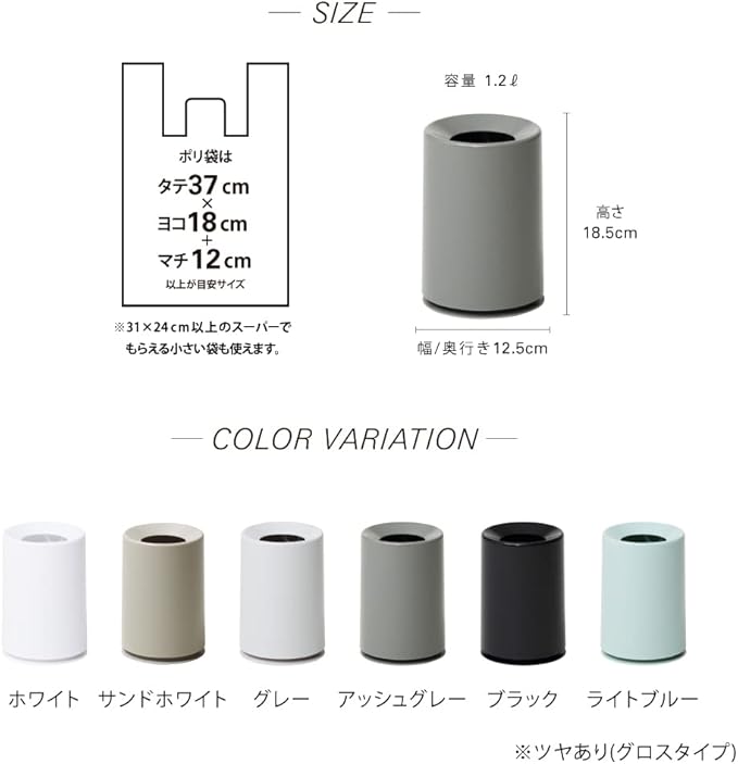ゴミ袋は縦37 横18cm+マチ12cm以上のものが、使い勝手良くご利用いただけます。