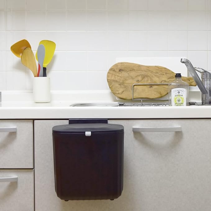 フタの開き方が2通りのダストボックス。アジャスターを使い分けることで、キッチン扉に設置したり、両面テープで壁面に取り付けることも可能です。両面テープでのアジャスターを使用した場合は、耐荷重約1.5kgです。ドアフック用アジャスターを使用する場合は、厚さ2.5cmまでの扉に対応しています。袋留め付きで、フタを閉めたときに袋が外から見えません。容量7Lなので、キッチンのドアに取り付けて生ゴミ用のダストボックスや、デスク周り、洗面所、トイレなど幅広くご使用いただけます。
