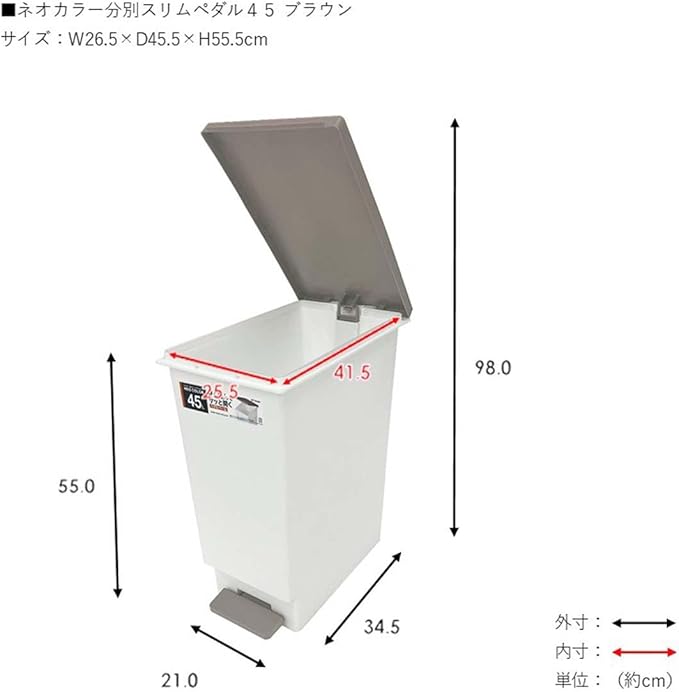 新輝合成 トンボ ネオカラー ゴミ箱 軽いペダルでサッと開く スリム 45リットル 2個セット ブラウン 幅26.5 奥行45.5 高さ55.5cm 蓋付き 分別