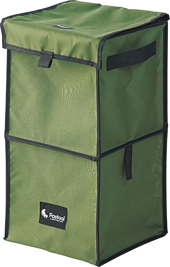 pastool 薄くたためるダストボックス サイズ2段階 袋固定可能 オリーブ 高さ62㎝