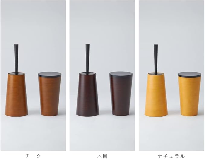 【木目調の落ち着いた風合い】木目調の落ち着いた風合いがどんなトイレのインテリアにもマッチします。紀州塗りの技法を活かして塗り上げた木目塗りはひとつひとつ職人が丁寧に塗り上げています。ブラシとポットを並べるとすっきりとした美しいフォルム。