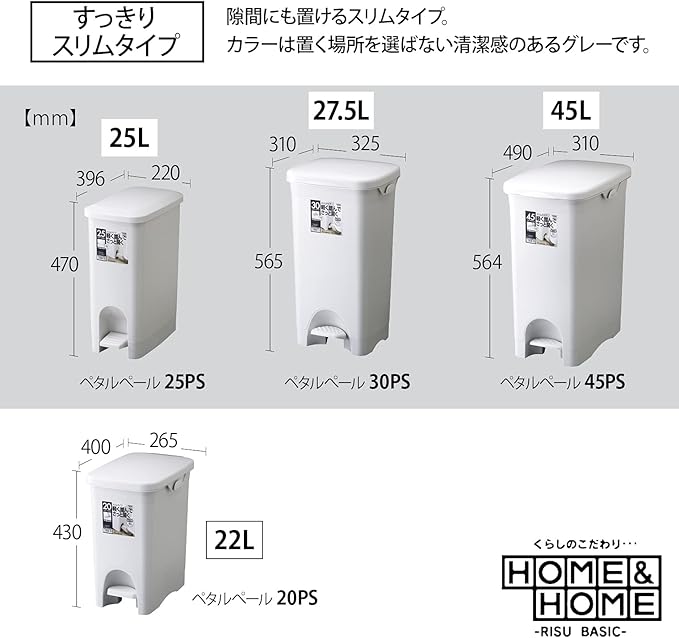 リス ゴミ箱 ペダルペール ポリ袋フック付き グレー 25L H&H 日本製 25PS