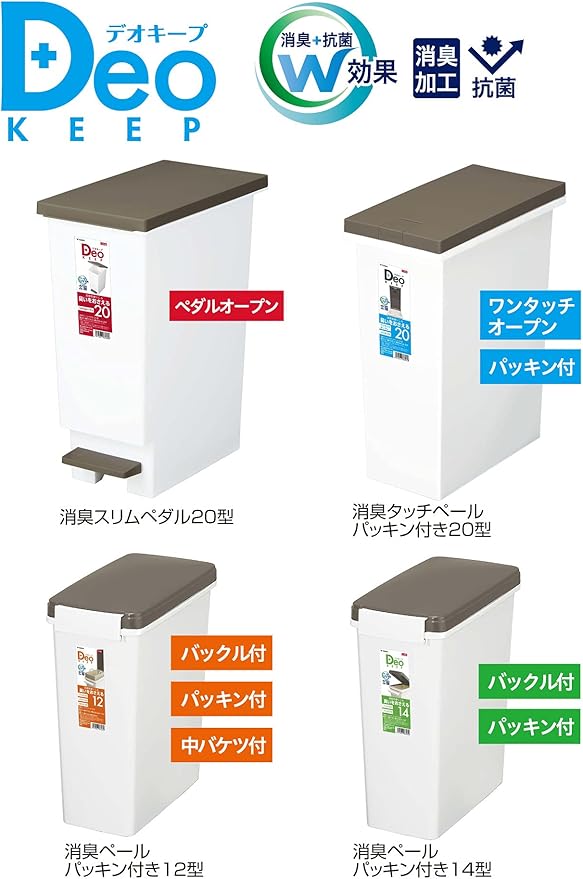 新輝合成 トンボ デオキープ ゴミ箱 消臭 抗菌 パッキン付 14リットル ホワイト 幅17 奥行34 高さ38cm 蓋付き 日本製