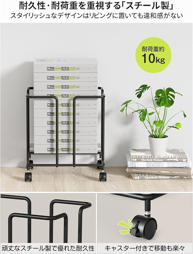 【キャスター付き】高品質静音型でスムーズに移動可能なキャスター。キャスターにきちんとロックができる、移動させても安定した状態をキープできるので便利です。掃除の時など移動もスムーズです。古紙 ストッカー