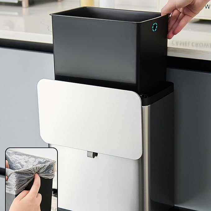 【ポータブルインナーバレル】:キッチンのゴミ箱には取り外し可能な内バケツが付いており、簡単に取り外してゴミ捨てや掃除ができます。 ハンドル付きのインナーバレルにより、持ち運びや移動が簡単です。