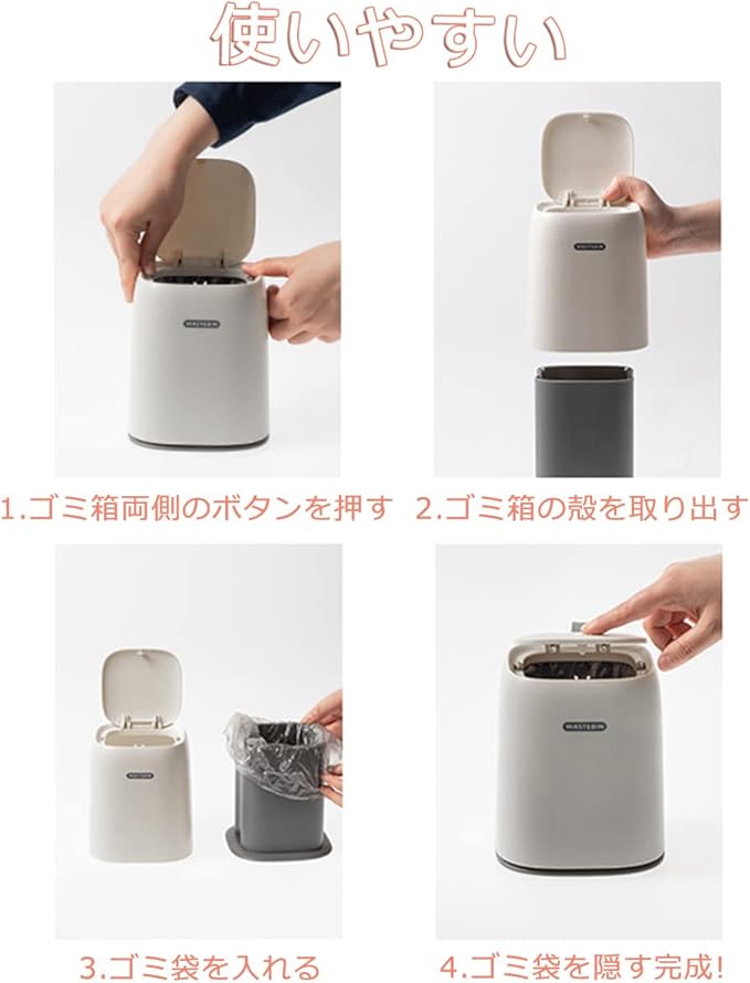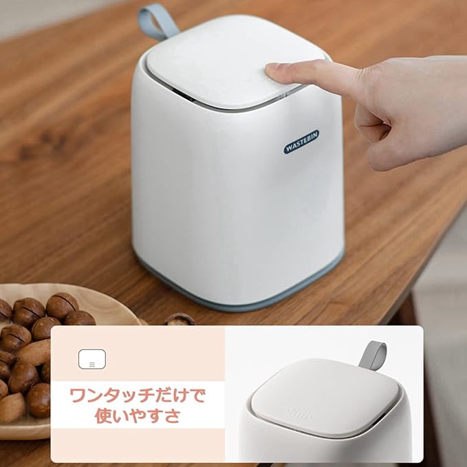 蓋付きゴミ箱 小さい 1.5L 四角い 車用ゴミ箱 おしゃれ ふた付き 無臭できれい 小さいゴミ箱 使いやすい 押し弾ける ミニゴミ箱 コットンや綿棒捨てやすい ポリ袋隠す 卓上ゴミ箱 かわいい トイレ、車載、オフィス、キッチン適用 小さめ 収納ボックス (ホワイト)