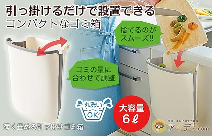 丸洗いOK! 捨てるのがスムーズ! 引っ掛けるだけで設置できるコンパクトゴミ箱。