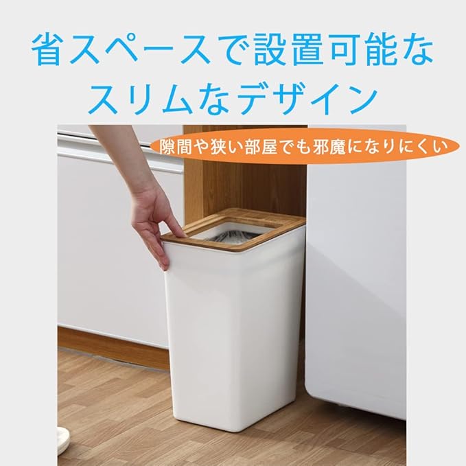 【省スペースで設置可能なスリムなサイズ】スリムなデザインで小さめのサイズですので、部屋の隙間や狭い部屋に置いても邪魔になりにくいです。また蓋なしですので寝ながらや少し離れた場所からでもゴミを捨てることができ非常に便利です。