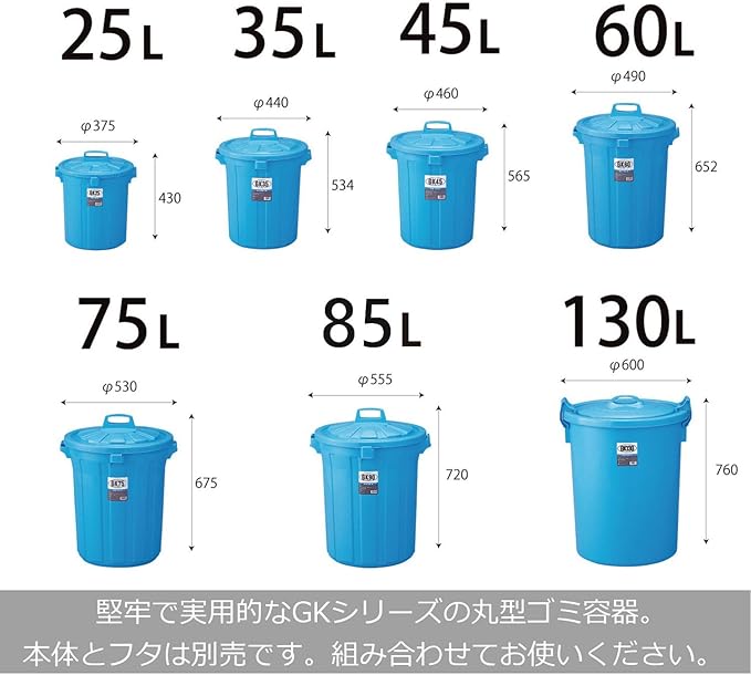 リス ゴミ箱 業務用 丸型 蓋 ブルー 60L用 『丈夫な』GK容器 60型 日本製