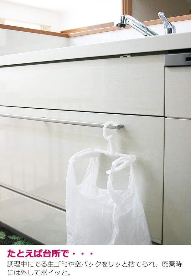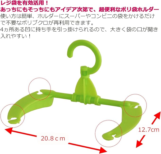 ●使い方は簡単、ホルダーにスーパーやコンビニの袋をかけるだけで不要なポリブクロが再利用できる