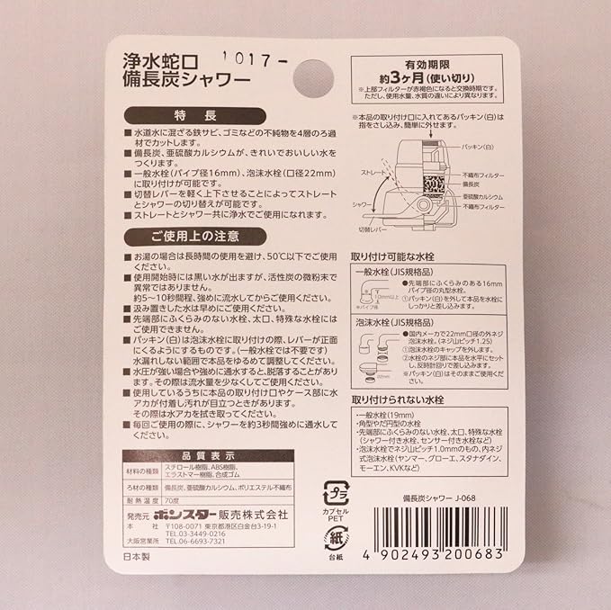 ボンスター 浄水蛇口 備長炭 シャワー&ストレート レバー切り替え 一般・泡沫水栓に使用OK 日本製 J-068