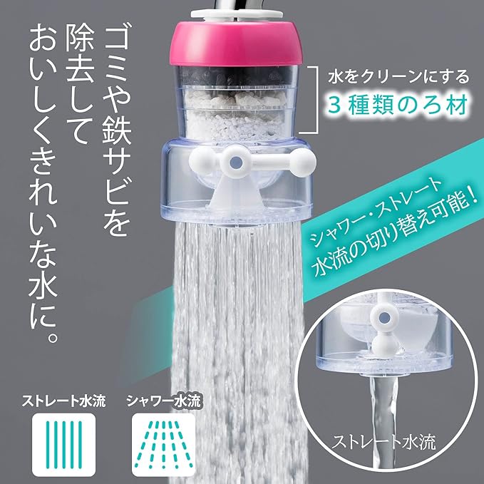 クリタック(Kurita) 浄水蛇口 Q‐tap S ピンク 日本製 QTSP-2065