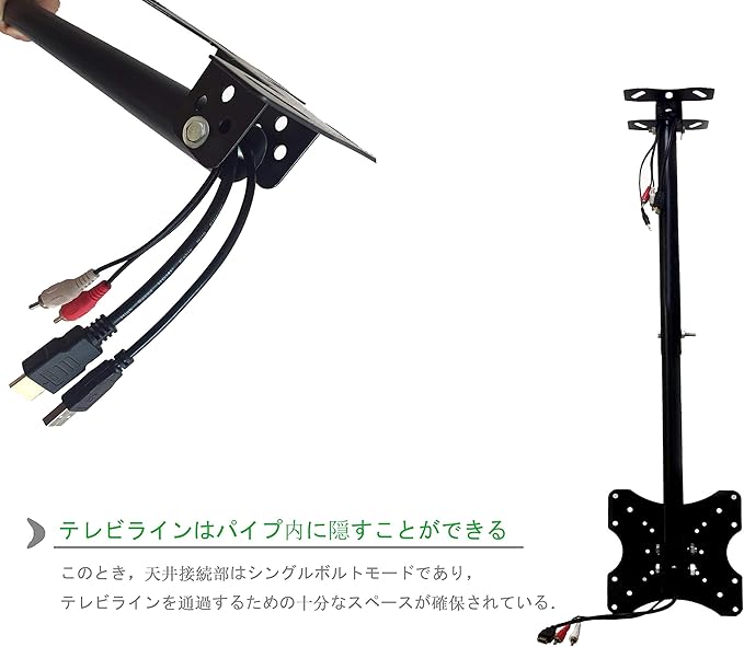 丈夫し、取り付けやすい。配線はパイプの中に収納することができます、テレビを吊るしてお部屋スッキリ