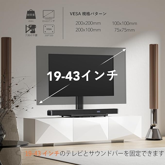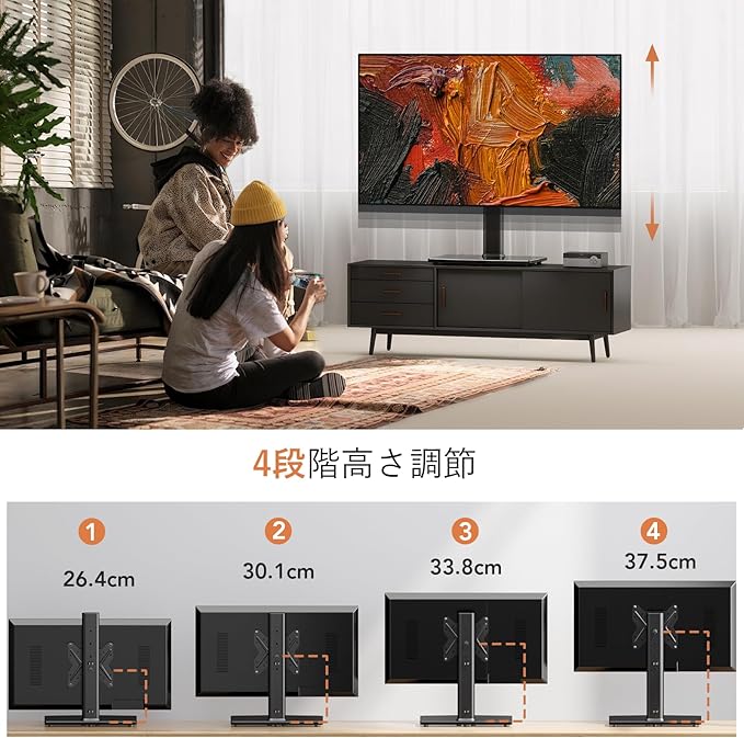 テレビを最大45度、最大45度まで回転させて、テレビが座っている高さを調整して、あなたのスペースの視野角を広げます。 あなたがどんな座席に座っていても、すべての写真を撮るのに最高の角度があります