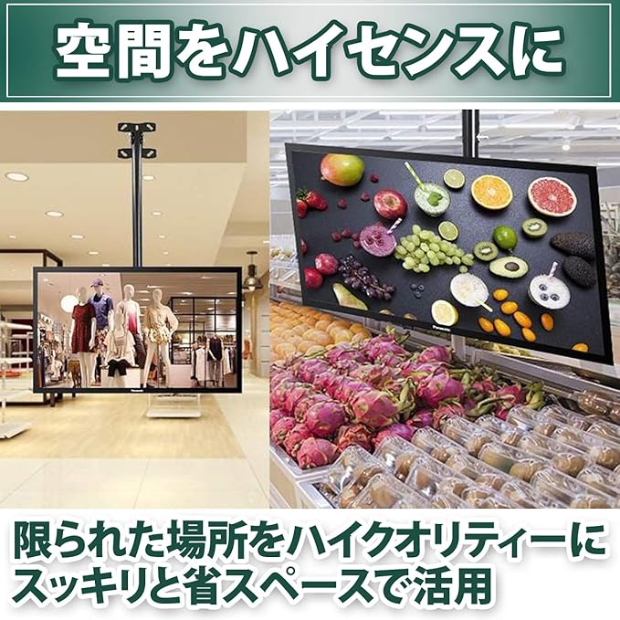 様々な場所で有効活用できる:丈夫で、取り付けやすい。配線はパイプの中に収納することができます、テレビを吊るしてお部屋スッキリ。オフィスや会議室、衣料品店、飲食店、レジャー施設、病院の待合室など様々な場所でスペースの有効活用に役立ちます。