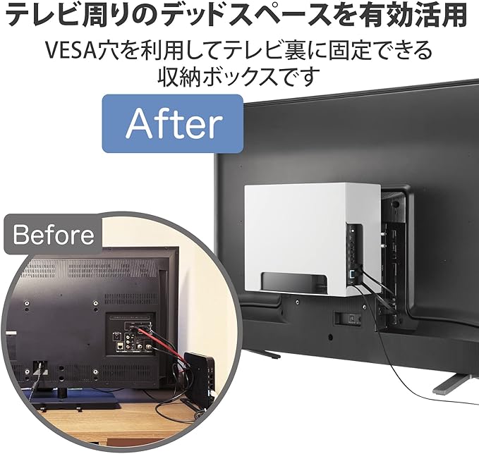 ■ 薄型テレビ・モニタ裏のデッドスペースを収納スペースに変える、VESA規格対応の収納BOXです。