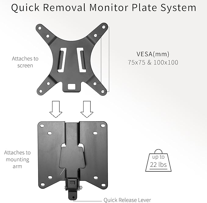 互換性 - 最大22ポンドをサポートし、VESA 75mm x 75mm&100mm x 100mmマウントホールに適合するテスト済み