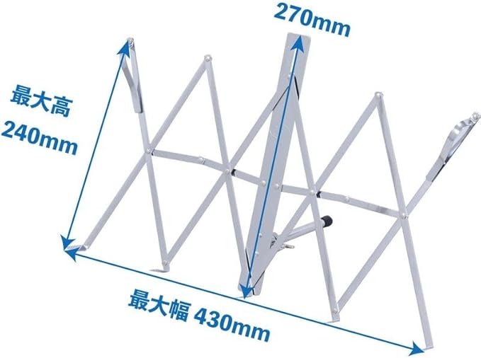 サイズ:最大幅 430mm、最大高 240mm、折りたたみ時全長 275mm