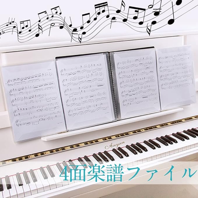 【大容量収納】中身のクリアファイルは10枚があり、40面の楽譜を収納できます。広げると4ページ見られることにより、何度も楽譜をめくる必要がなく、演奏に集中できます。