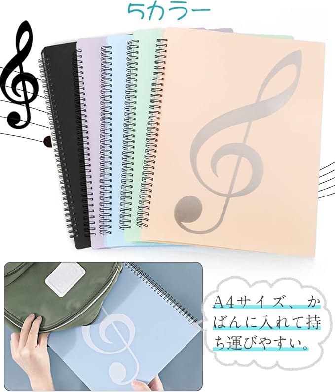 楽譜ファイル 4ページ展開 A4サイズ 10枚で40面収納 譜面 作曲 レッスン ファイル 5色 書き込みできる 反射しない 見開き ピアノ 電子ピアノ アクセサリー (ピンク)