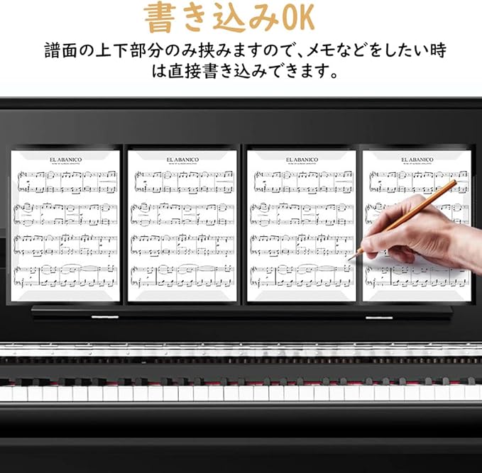 【書き込みOK】譜面の上下部分のみ挟みますので、メモなどをしたい時は直接書き込みできます。